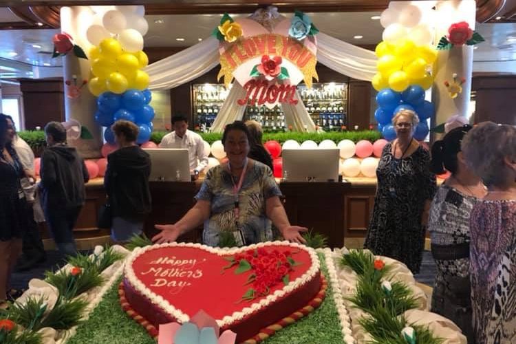 Happy Mother’s Day to everyone. This is my mother in law who is currently sailing on P&O’s Pacific Dawn. We love how the ship gets right in and decorates for all special occasions.